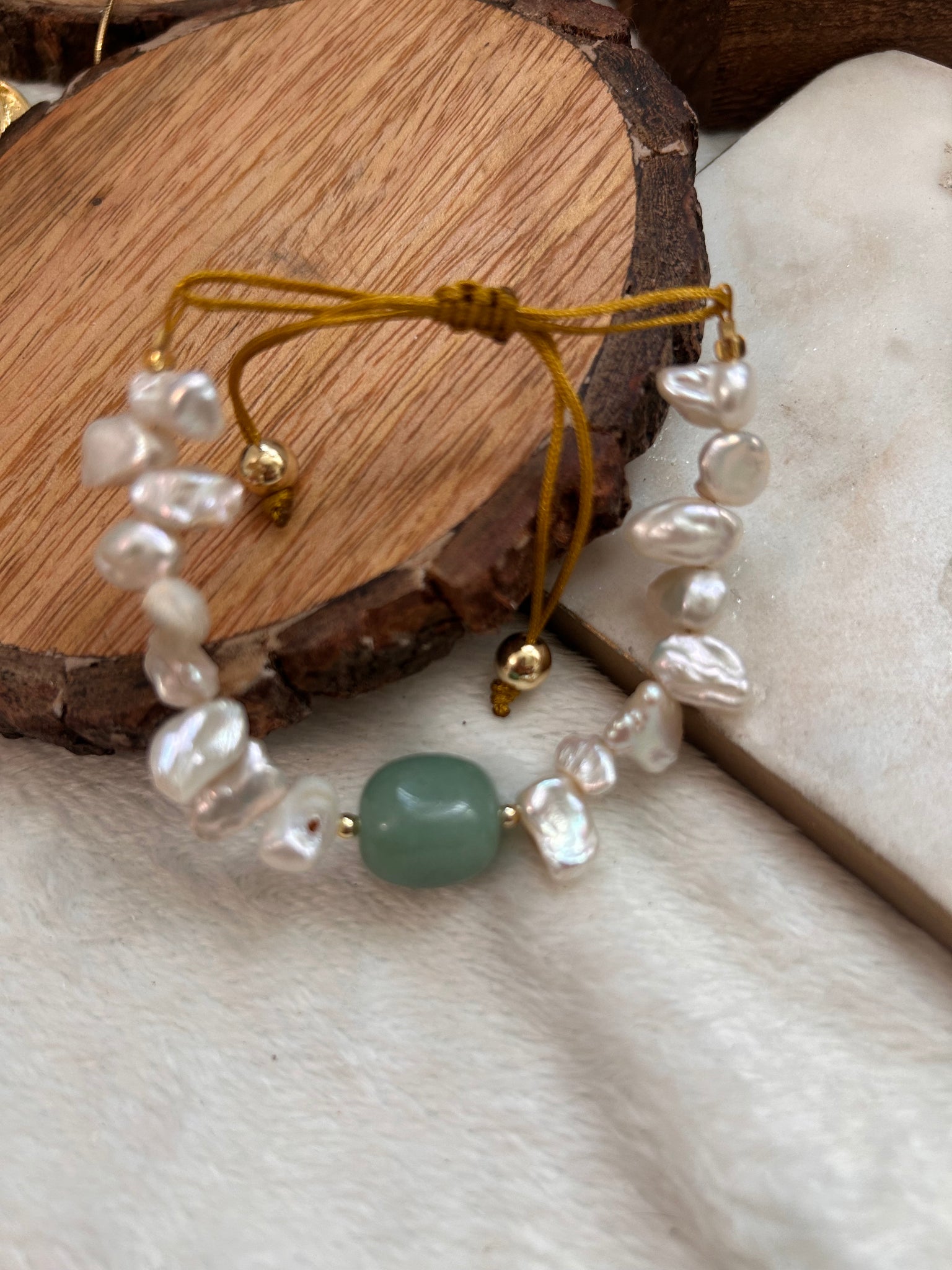 Freshwater pearls with agate adjustable bracelet
