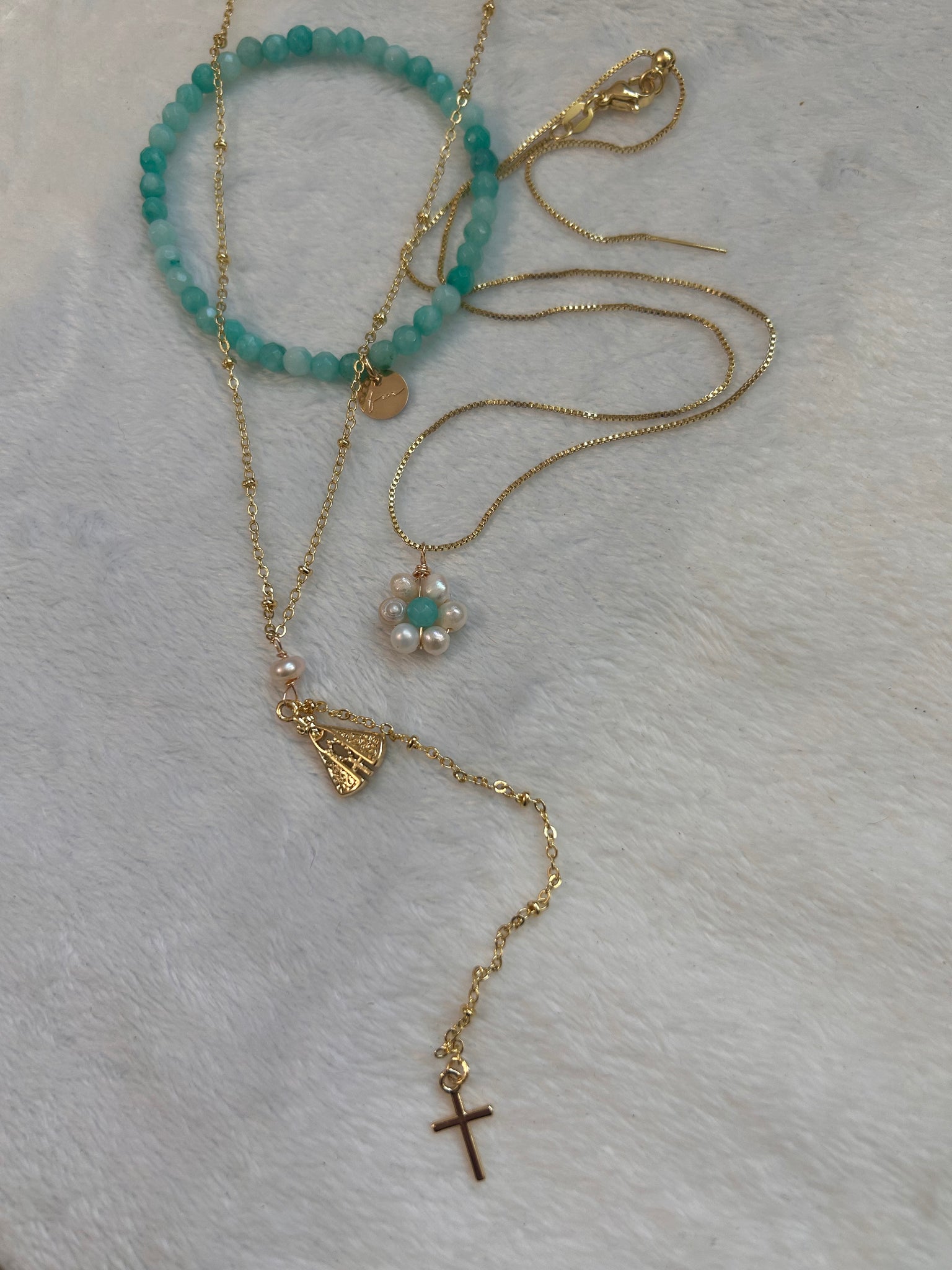 18k goldplated adjustable chain with freshwater pearls handmade flower.